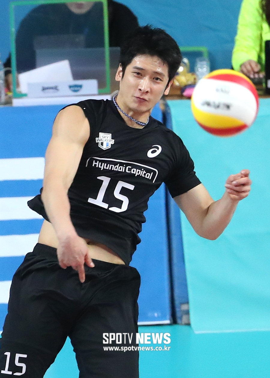 [스포티비뉴스=서울, 곽혜미 기자] 2018-2019 도드람 V리그 남자부 우리카드와 현대캐피탈의 경기가 3일 오후 서울 장충체육관에서 열렸다. 현대캐피탈 문성민이 서브를 넣고 있다.
