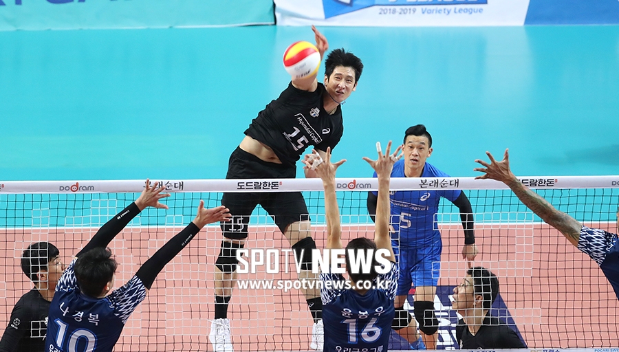[스포티비뉴스=서울, 곽혜미 기자] 2018-2019 도드람 V리그 남자부 우리카드와 현대캐피탈의 경기가 3일 오후 서울 장충체육관에서 열렸다. 현대캐피탈 문성민이 백어택을 시도하고 있다.