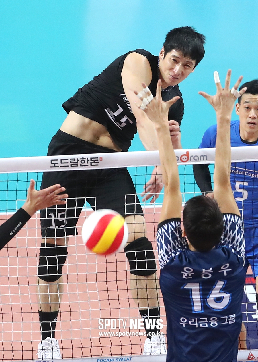 [스포티비뉴스=서울, 곽혜미 기자] 2018-2019 도드람 V리그 남자부 우리카드와 현대캐피탈의 경기가 3일 오후 서울 장충체육관에서 열렸다. 현대캐피탈 문성민이 백어택을 시도하고 있다.