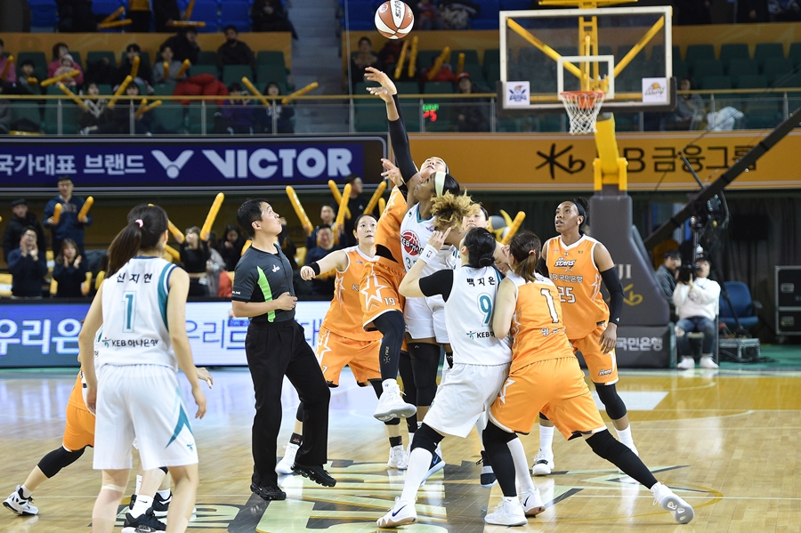 [스포티비뉴스=이민재 기자] 분위기를 이어가고자 하는 KB스타즈, 분위기를 끊고 싶은 KEB하나은행이 만납니다.