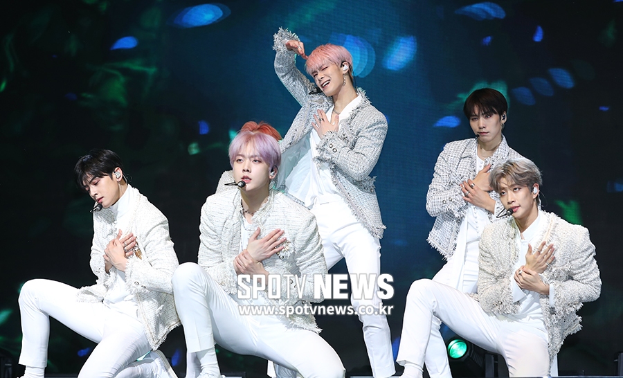 [스포티비뉴스=서울, 곽혜미 기자] 아스트로 첫 번째 정규 앨범 ‘All Light(올라잇)’ 발매 기념 쇼케이스가 16일 오후 서울 강남구 삼성동 SMTOWN 코엑스 아티움에서 열렸다. 아스트로가 무대를 펼치고 있다.