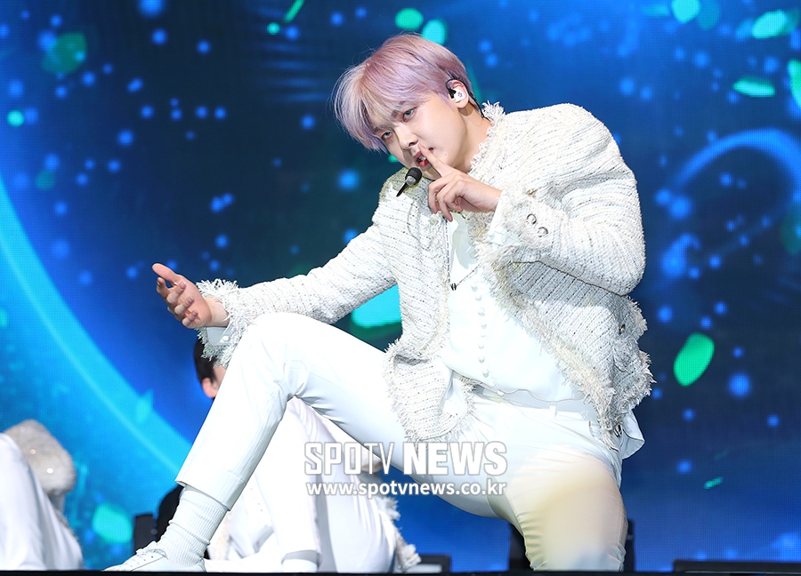 [스포티비뉴스=서울, 곽혜미 기자] 아스트로 첫 번째 정규 앨범 ‘All Light(올라잇)’ 발매 기념 쇼케이스가 16일 오후 서울 강남구 삼성동 SMTOWN 코엑스 아티움에서 열렸다. 아스트로 윤산하가 무대를 펼치고 있다.