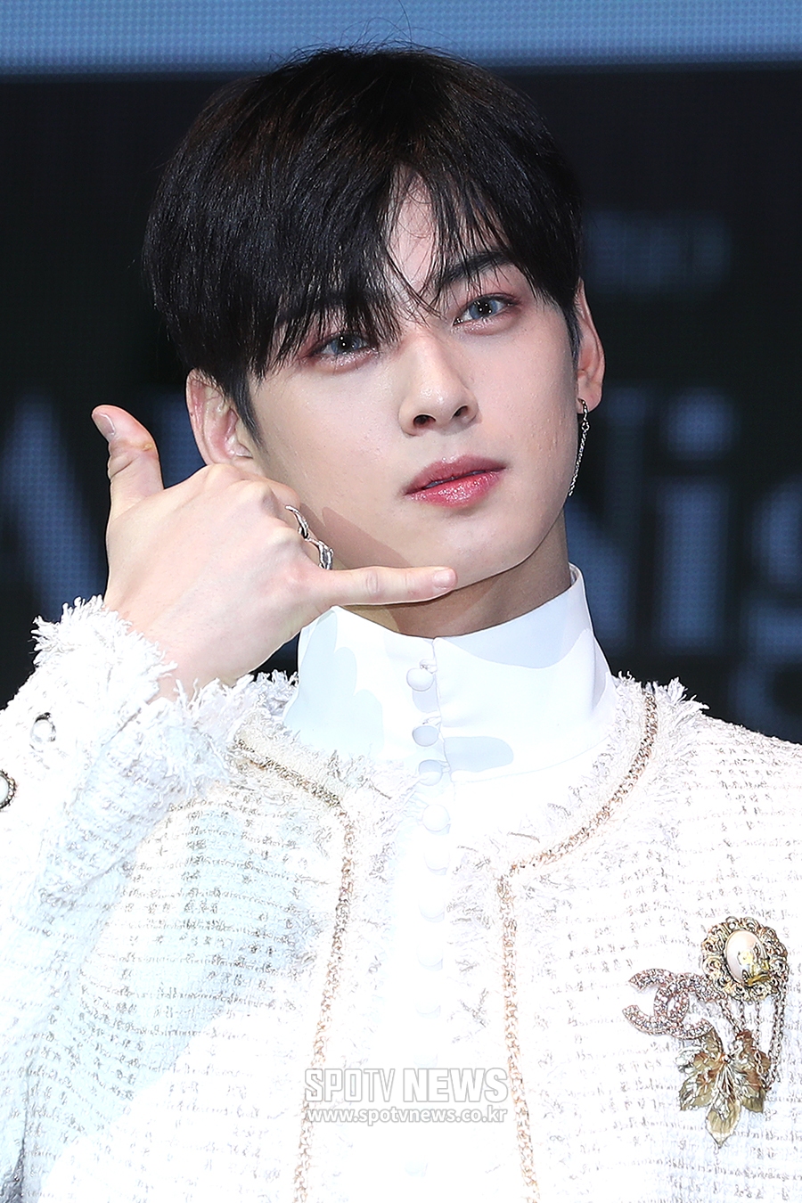 [스포티비뉴스=서울, 곽혜미 기자] 아스트로 첫 번째 정규 앨범 ‘All Light(올라잇)’ 발매 기념 쇼케이스가 16일 오후 서울 강남구 삼성동 SMTOWN 코엑스 아티움에서 열렸다. 아스트로 차은우가 포즈를 취하고 있다.