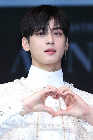 [스포티비뉴스=서울, 곽혜미 기자] 아스트로 첫 번째 정규 앨범 ‘All Light(올라잇)’ 발매 기념 쇼케이스가 16일 오후 서울 강남구 삼성동 SMTOWN 코엑스 아티움에서 열렸다. 아스트로 차은우가 포즈를 취하고 있다.