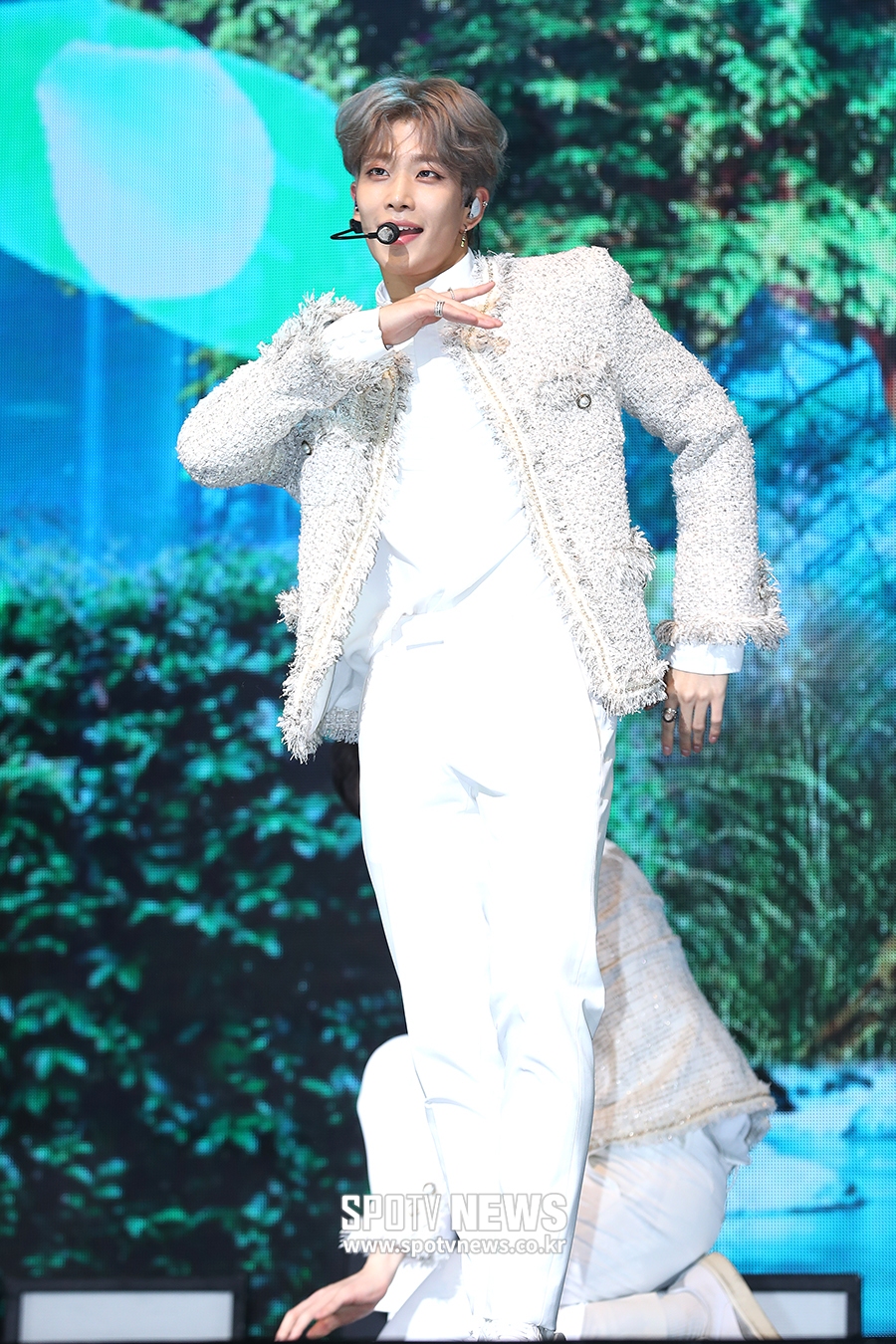 [스포티비뉴스=서울, 곽혜미 기자] 아스트로 첫 번째 정규 앨범 ‘All Light(올라잇)’ 발매 기념 쇼케이스가 16일 오후 서울 강남구 삼성동 SMTOWN 코엑스 아티움에서 열렸다. 아스트로 MJ가 무대를 펼치고 있다.