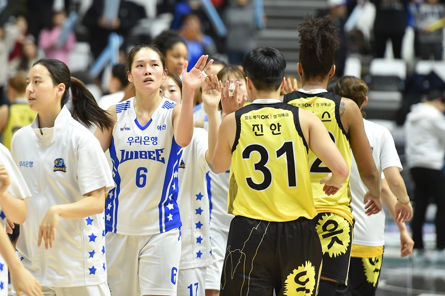 우리은행과 OK저축은행의 경기가 18일 오후 7시 아산 이순신체육관에서 열립니다.