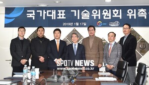 [스포티비뉴스=서울, 곽혜미 기자] KBO 기술위원회 첫 회의가 17일 오후 서울 강남구 도곡동 KBO 야구회관에서 열렸다. 이종열, 최원호, 박재홍, 정운찬 총재, 김시진 기술위원장, 김진섭 정형외과 원장, 마해영 위원이 기념 촬영을 하고 있다.