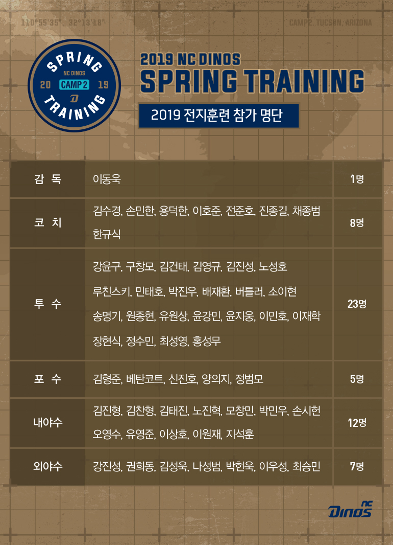 NC는 새 시즌을 한 발 먼저 준비하는 마음으로 지난 마무리 캠프를 'CAMP 1'이라고 이름 붙인 데 이어 이번 전지훈련은 'CAMP 2 in Tucson'으로 운영한다.