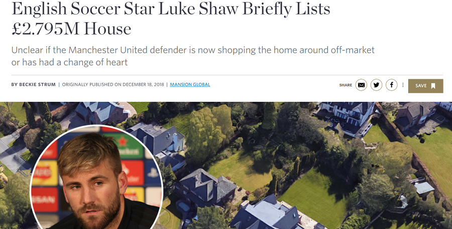 [스포티비뉴스=이종현 기자] 전 세계 왼쪽 풀백 중 가장 높은 수준의 주급(주급 15만 파운드, 약 2억 2000만 원)을 수령 중인 루크 쇼(23, 맨체스터 유나이티드)가 맨체스터 소재의 169평, 280만 파운드(약 41억)에 달하는 집을 내놨다가 철회했다는 소식이다. 주제 무리뉴 전 맨유 감독에 체제에서 경기에 나서지 못했던 시기와 절묘하게 일치한다.