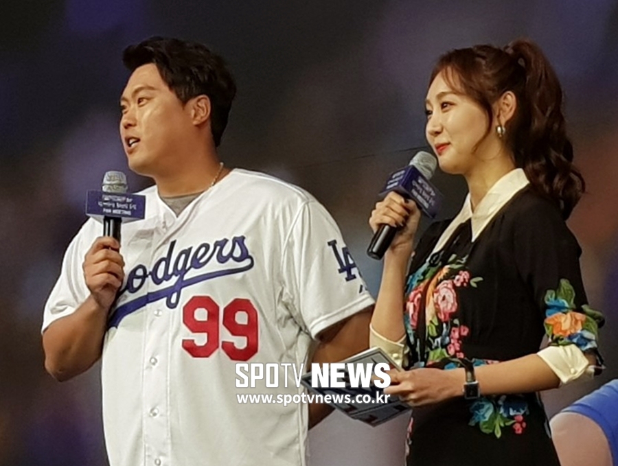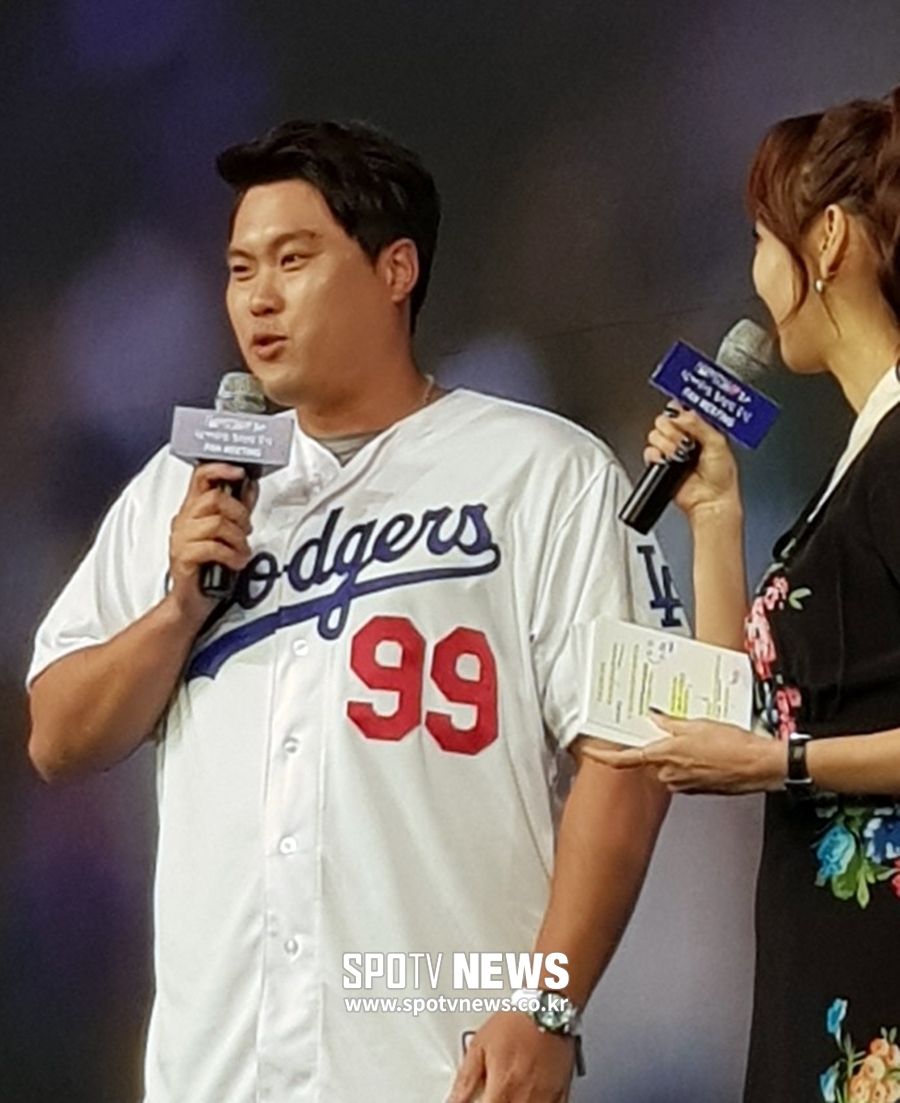 팬들의 뜨거운 박수와 환호 속에 류현진은 무대 중앙으로 나섰다. 류현진은 자리를 찾은 팬들에게 감사 인사를 했고, 곧이어 그의 지난 시즌 활약상이 담긴 영상이 상영됐다.