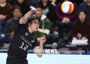 [스포티비뉴스=천안, 한희재 기자] 현대캐피탈과 우리카드의 2018-2019 도드람 V리그 남자부 경기가 27일 오후 충남 천안 유관순체육관에서 열렸다. 현대캐피탈 전광인이 공격하고 있다.