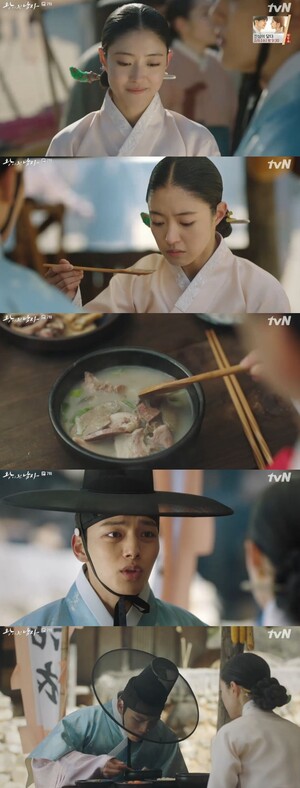 결국 두 사람은 주막에 앉아 국밥을 먹게 됐다. 소운은 "이것이 무엇입니까?"라고 물었고, 하선은 "돼지 염통이다"라고 말해 소운을 깜짝 놀라게 했다.