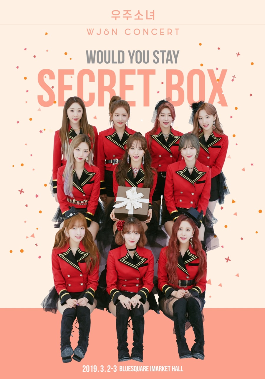 29일 스타쉽엔터테인먼트는 "우주소녀가 오는 3월 2일과 3일, 서울 한남동 블루스퀘어 아이마켓홀에서 두 번째 단독 콘서트 '우주 스테이-시크릿 박스'를 개최한다"고 밝혔다.