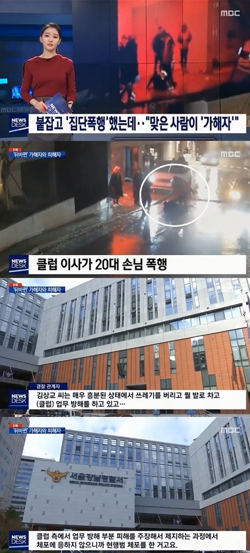 28일 방송된 MBC '뉴스데스크'는 지난해 서울 강남 역삼동 클럽 버닝썬에서 벌어진 집단 폭행 사건 관련 CCTV 영상을 공개하며 "집단폭행을 당한 A씨가 피해를 입었음에도 가해자로 둔갑했다"고 보도해 논란이 일었다.