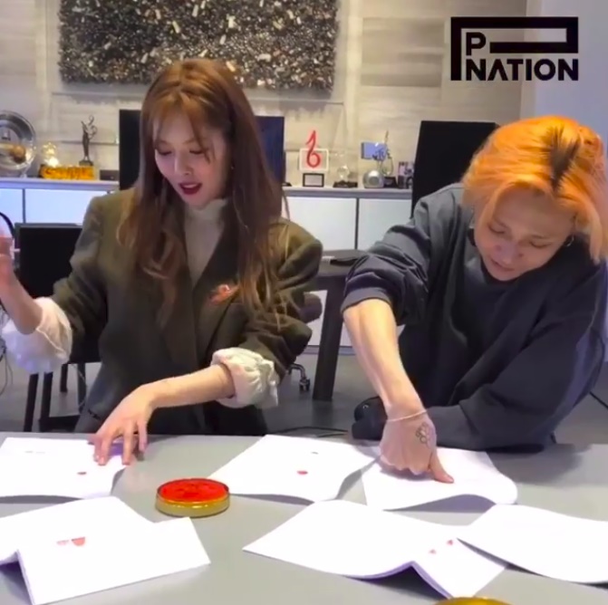 공개된 영상에는 현아와 이던이 계약서에 지장을 찍는 모습이 담겼다. 현아는 "지장 처음 찍어본다"며 설렌 감정을 드러냈다.