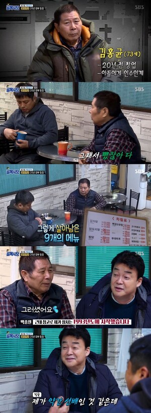 이후 백종원은 메뉴 축소에 대한 이야기도 나눴고 아버지는 서운함 없이 아들의 성실함을 치켜세우며 의견을 존중했다.