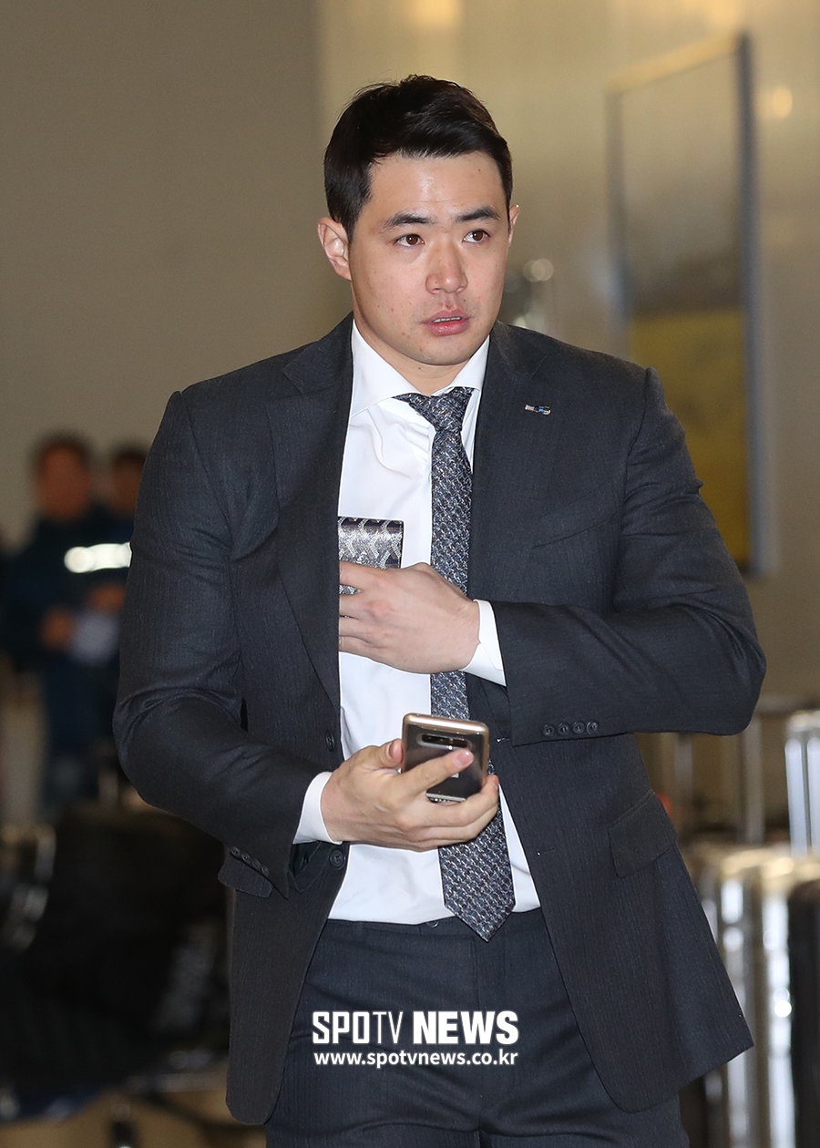 [스포티비뉴스=인천국제공항, 곽혜미 기자] 두산 베어스가 스프링캠프 전지훈련을 위해 31일 오전 인천국제공항을 통해 일본 오키나와로 출국했다. 두산 김재환이 출국장으로 향하고 있다.