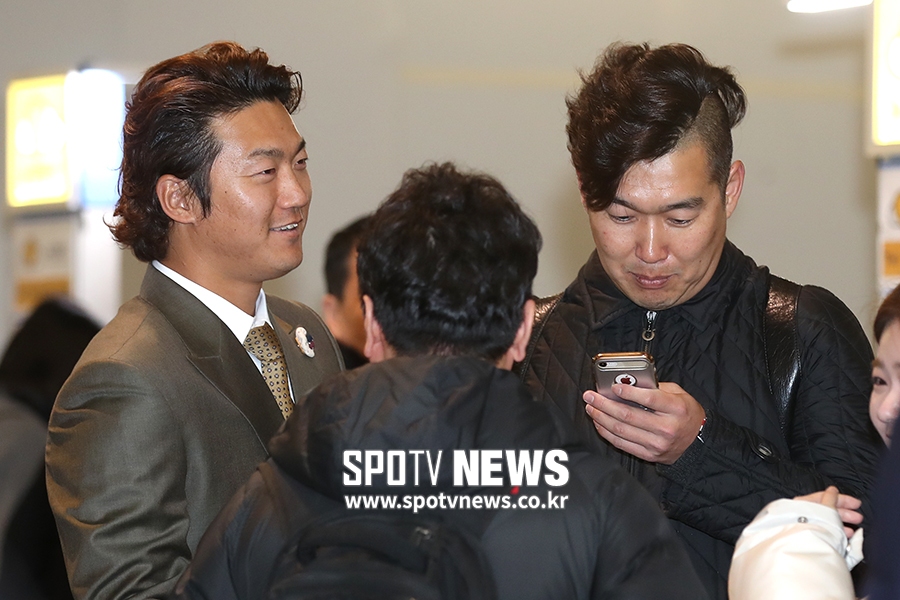 [스포티비뉴스=인천국제공항, 곽혜미 기자] 한화 이글스가 스프링캠프 전지훈련을 위해 31일 오전 인천국제공항을 통해 일본 오키나와로 출국했다. 한화 안영명과 송은범이 대화를 나누고 있다.