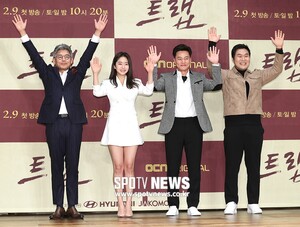[스포티비뉴스=서울, 곽혜미 기자] OCN 드라마틱 시네마 ‘트랩’ 제작 발표회가 31일 오후 서울 강남구 역삼동 르메르디앙 서울 호텔에서 열렸다. 배우 성동일, 임화영, 이서진, 윤경호(왼쪽부터)가 포즈를 취하고 있다.