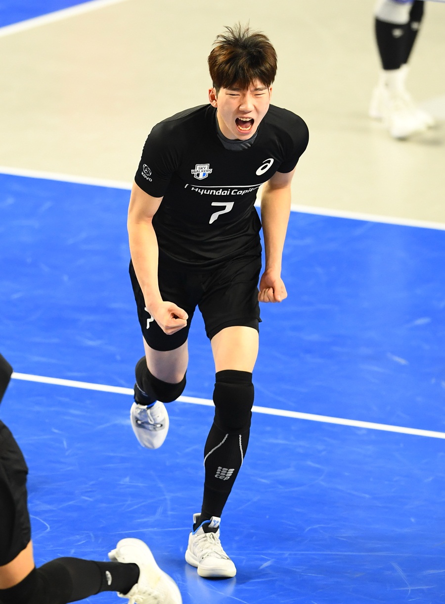 세터 이원중과 찰떡호흡을 과시한 그는 "(이)원중이 형 덕분이다. 볼을 잘 올려줬다"며 세터 이원중에게 공을 돌렸다.