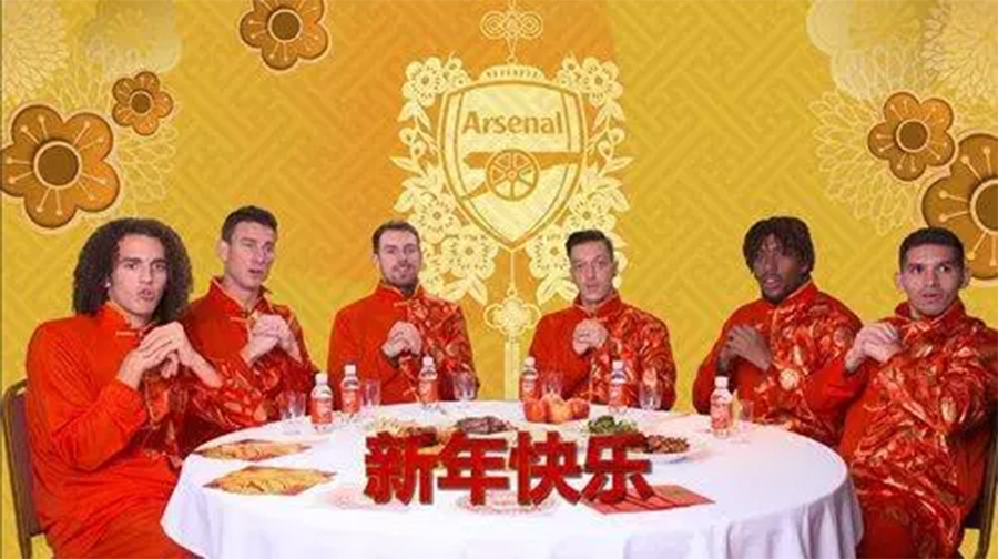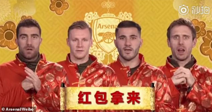 영상은 중국 웨이보를 통해 전해졌다. 알렉스 이워비가 만두 접시를 받는 장면과 외질과 램지가 중국어로 대화하는 장면이 있다. 에메리 감독도 중국어로 “새해 복 많이 받으세요”를 말하기도 했다.