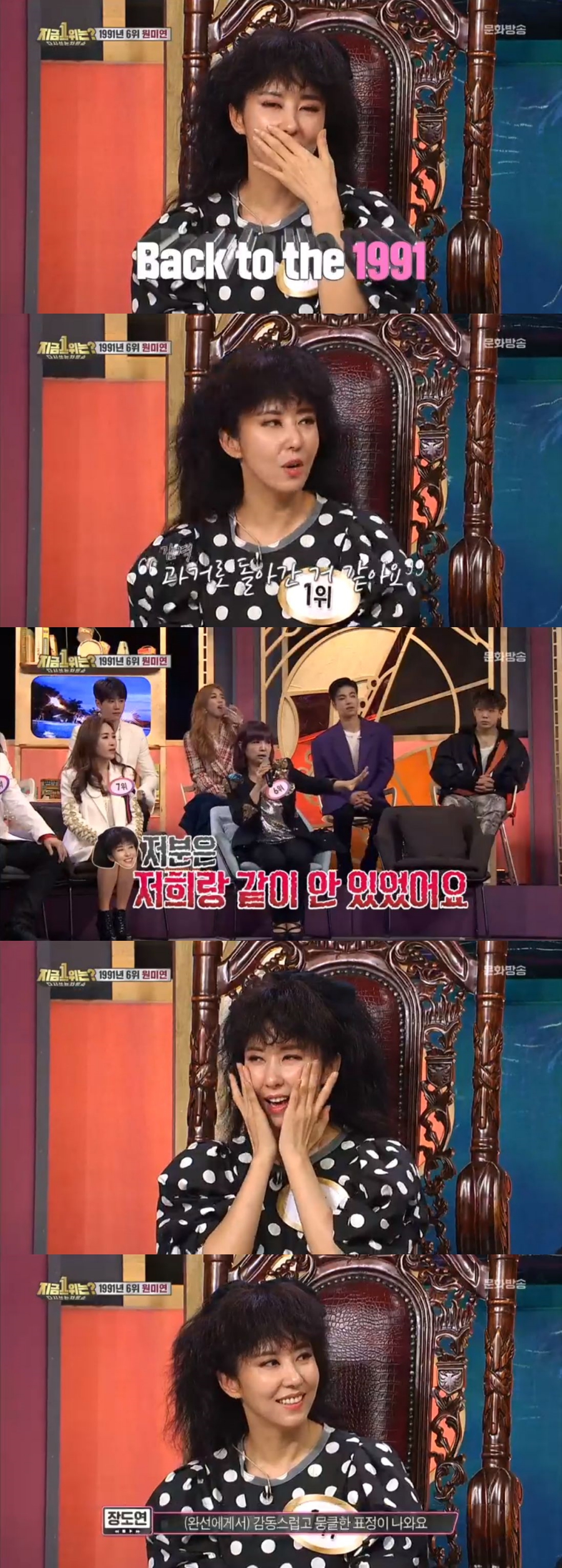 김완선은 '삐에로는 우릴 보고 웃지'로 1991년을 풍미한 여왕이자 1위 가수로 왕좌에 앉았다. 1969년생인 김완선은 50대의 나이가 믿기지 않는 미모와 스타일을 뽐내며 시선을 붙들었다.