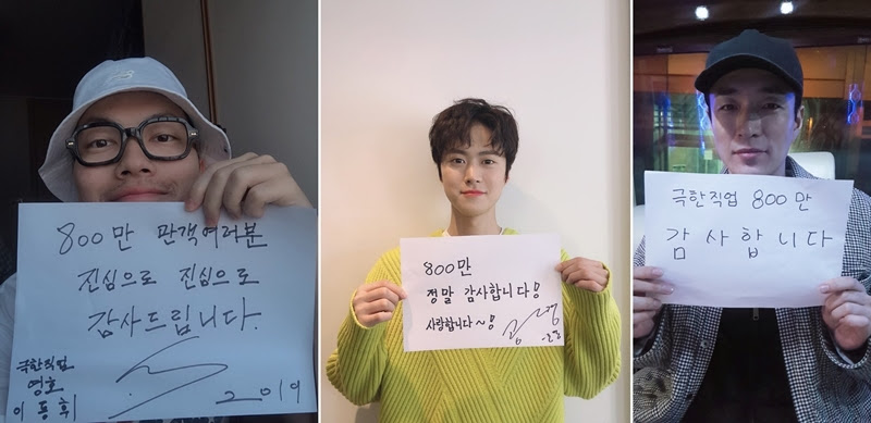 한편 800만 관객을 사로잡은 마성의 마약반 5인방 류승룡, 이하늬, 진선규, 이동휘, 공명과 이병헌 감독은 진심을 꾹꾹 눌러 담은 메시지와 함께 인증샷을 공개해 관객들에게 감사의 마음을 전했다.