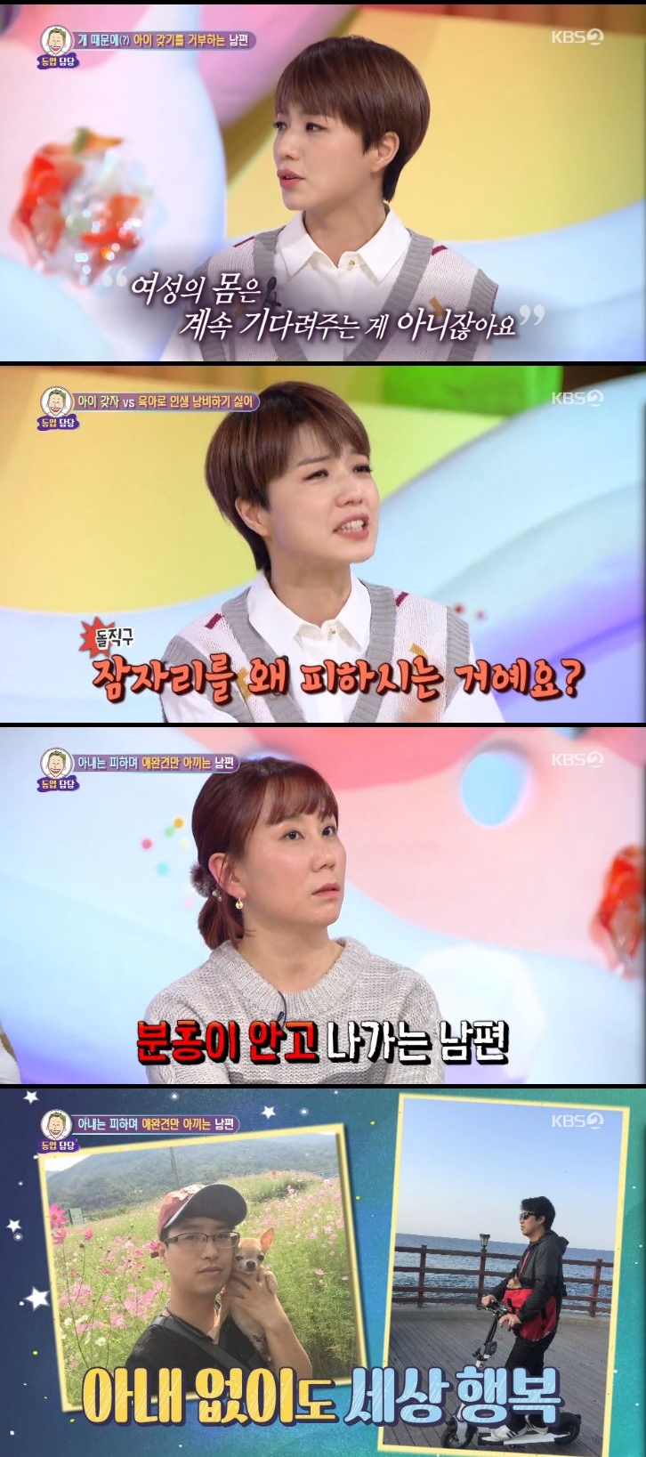 더불어 남편은 "아이를 많이 봐도 귀엽다는 생각이 안 든다. 현실을 보게 된다. 아내를 포기하게 할 것이다"라고 목소리를 높였다. 아내는 이에 반박하며 "현재 아이를 가져도 무리는 아니라고 생각한다. 맞벌이를 하고 빚이 없다. 집 장만만 못한 것이다"라고 속상해 했다.