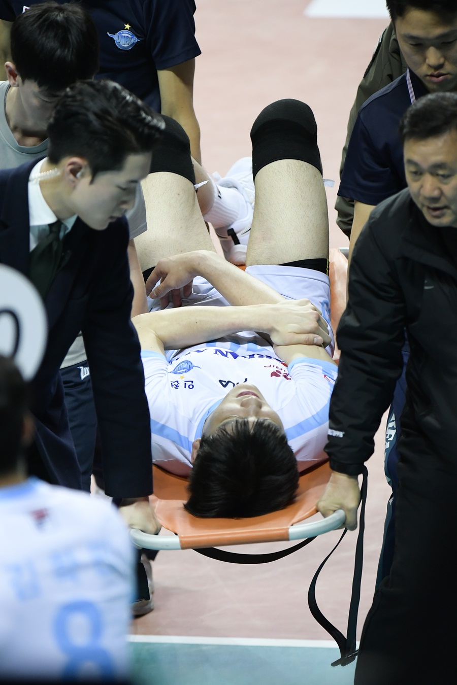 정지석은 1세트 팀이 9-12로 뒤진 상황에서 리시브를 하던 도중 리베로 정성민과 충돌했다. 오른쪽 팔꿈치를 부여잡고 코트에 쓰러진 그는 들것에 실려 나갔다. 팀의 살림꾼인 정지석이 빠진 대한항공은 흔들렸고 점수 차는 10-15로 벌어졌다. 그러나 이 상황에서 곽승석이 팀을 위기에 구했다.