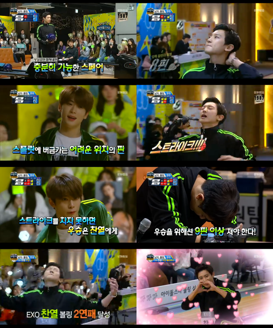 6일 오후 방송된 MBC '2019 설특집 아이돌스타 육상 볼링 양궁 리듬체조 승부차기 선수권 대회(이하 아육대)'에서는 남자 볼링 결승이 진행됐다. 엑소 찬열과 NCT127 재현의 대결이었다.