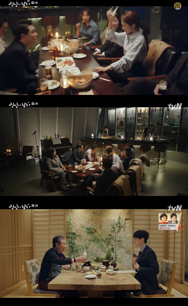 한편, 의뢰인과 저녁 식사를 하던 권정록은 휴대전화를 확인하며 급하게 자리에서 일어서, 뒤늦게 회식자리로 향했다. 회식자리에서 권정록을 발견한 오윤서는 만취한 모습을 보여 '흑역사'를 남겼다.