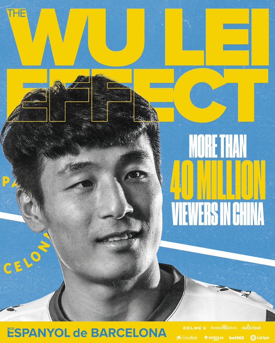 지금까지 에스파뇰이 치른 17경기를 700만 명이 본 것과 비교하면 우레이 효과는 확실하게 확인할 수 있다. 이미 우레이가 이적한 후 이틀 만에 그의 유니폼이 2천 장이 팔렸다. 유럽 최고의 리그에서 활약하는 중국 선수 등장에 중국이 흥분하고 있다.