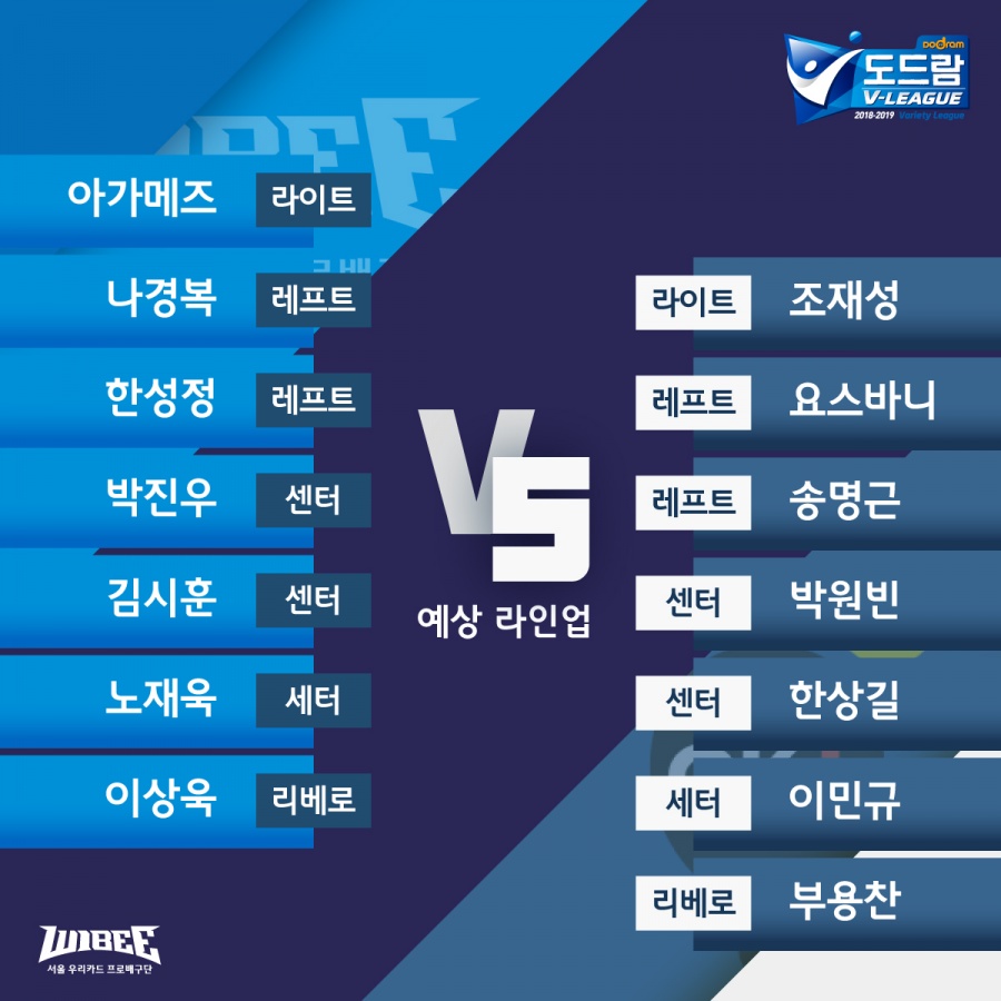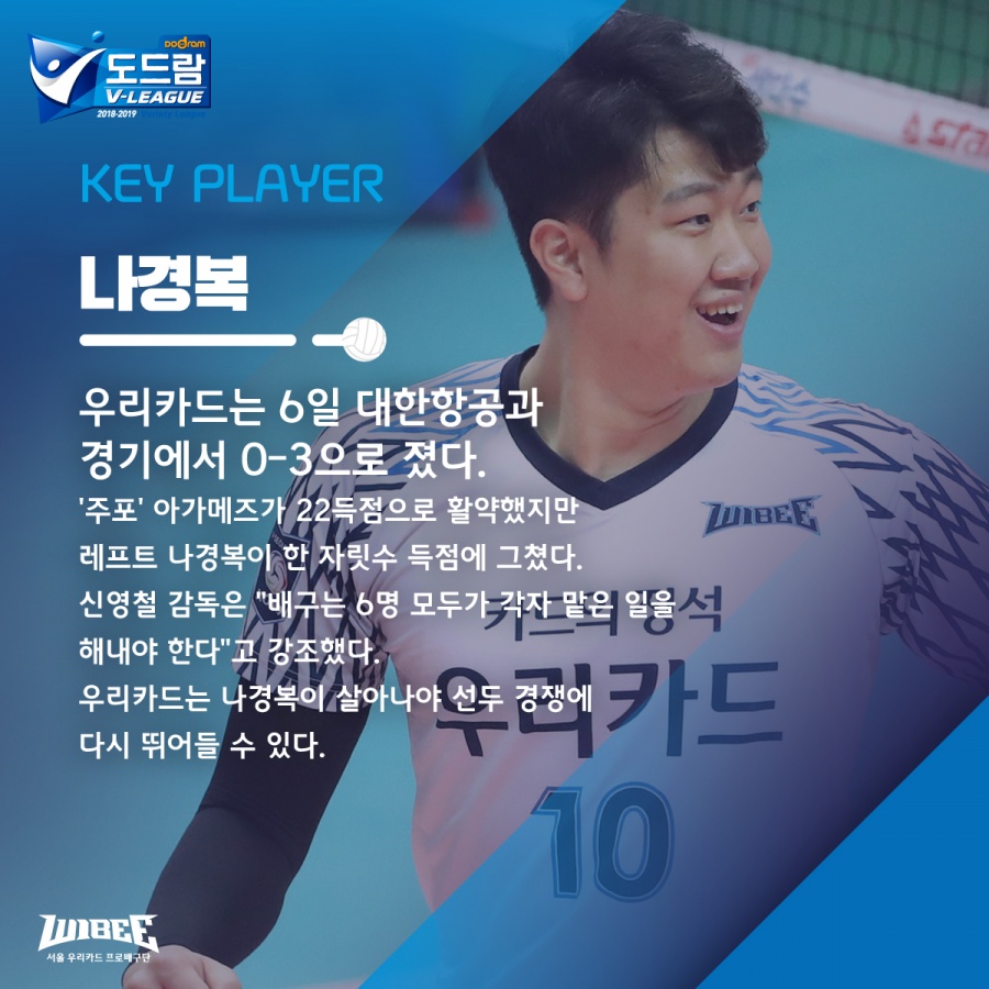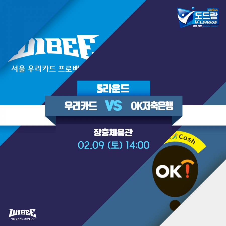 우리카드는 9일 장충체육관에서 도드람 2018-19 V리그 남자부 5라운드 OK저축은행과 경기를 치른다.