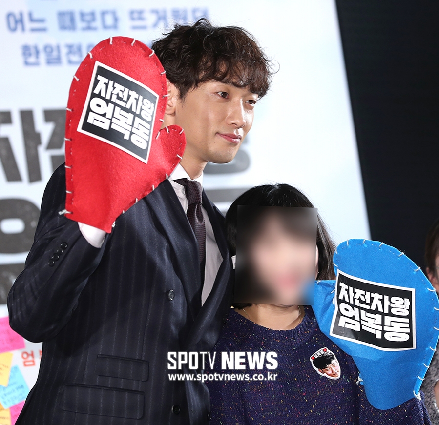 [스포티비뉴스=서울, 곽혜미 기자] 영화 '자전차왕 엄복동' 쇼케이스가 8일 오후 서울 송파구 잠실 롯데시네마 월드타워점에서 열렸다. 배우 정지훈이 팬과 기념 촬영을 하고 있다.