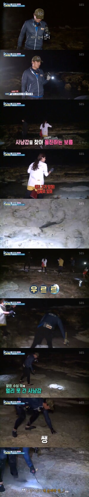 이태곤은 조용히 다가가 작살을 꽂았지만 물고기가 도망갔다. 그럼에도 끝까지 물고기를 쫓아간 이태곤은 끝내 명중해 물고기 한마리를 단 번에 잡았다.