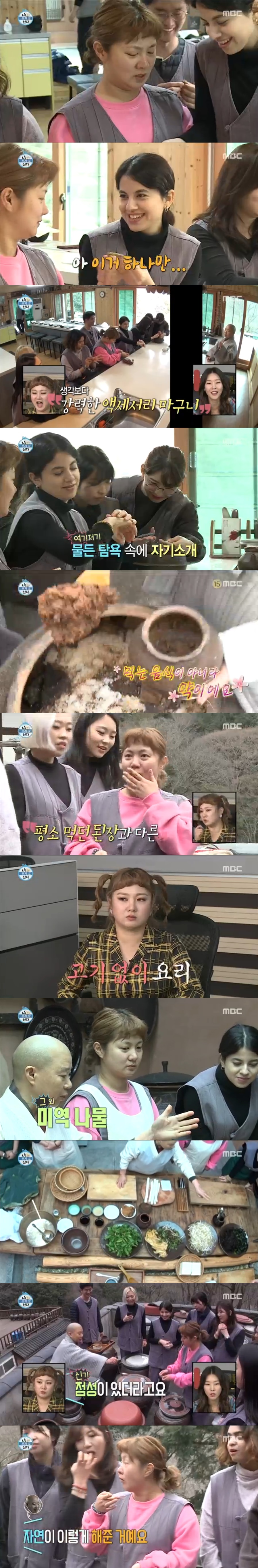 그런가하면 이날 방송에서는 박나래가 절식 요리법을 배워 눈길을 끌었다. 절에서 직접 담근 된장부터 각종 재료, 요리법이 소개돼 박나래의 호기심을 자극했다. 박나래는 "녹두전 만들기를 배웠는데 식감이 정말 좋았다. 육수가 아닌 채수를 만들어 떡국을 끌였는데 떡국 역시 정말 맛있었다"라고 소감을 전했다.