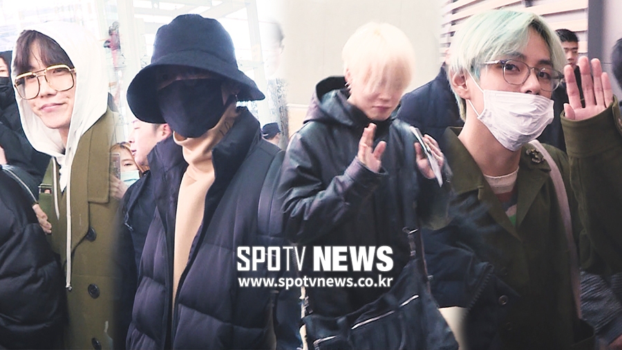 [스포티비뉴스=오찬우 PD] 9일 오후 방탄소년단(BTS,슈가,진,정국,뷔,제이홉,RM,지민)이 미국 로스앤젤레스 스테이플스 센터에서 열리는 제61회 그래미 어워즈에 시상자로 참석 차 .인천국제공항을 통해 미국으로 출국했다.