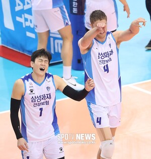 [스포티비뉴스=대전, 곽혜미 기자] 2018-2019 도드람 V리그 남자부 삼성화재와 우리카드의 경기가 12일 오후 대전 충무체육관에서 열렸다. 삼성화재 송희채가 터치아웃 어필을 하고 있다.