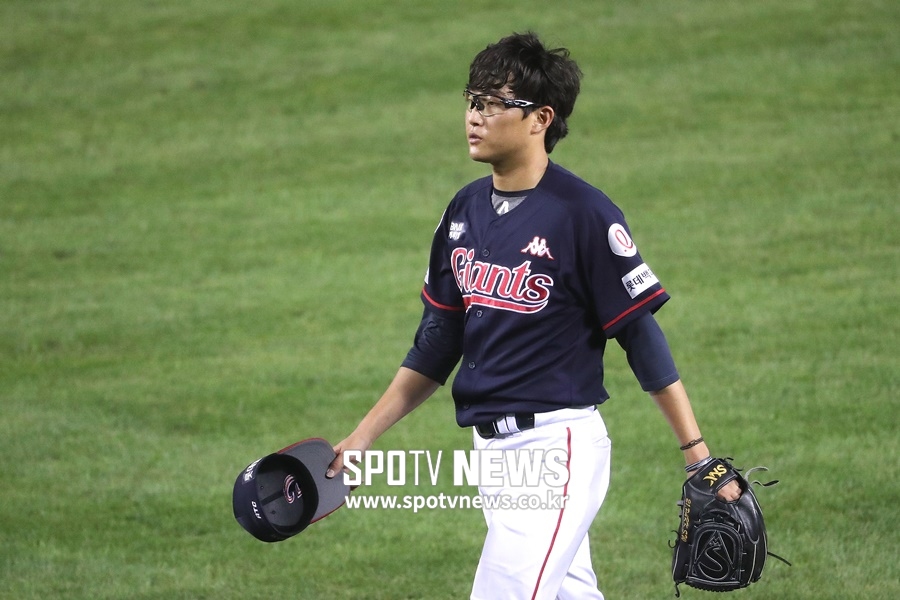 [스포티비뉴스=잠실, 곽혜미 기자] '2018 신한은행 마이카 KBO 리그' LG 트윈스와 롯데 자이언츠의 경기가 19일 오후 서울 잠실야구장에서 열렸다. 5회말 이닝을 마친 롯데 선발 박세웅이 더그아웃으로 향하고 있다.