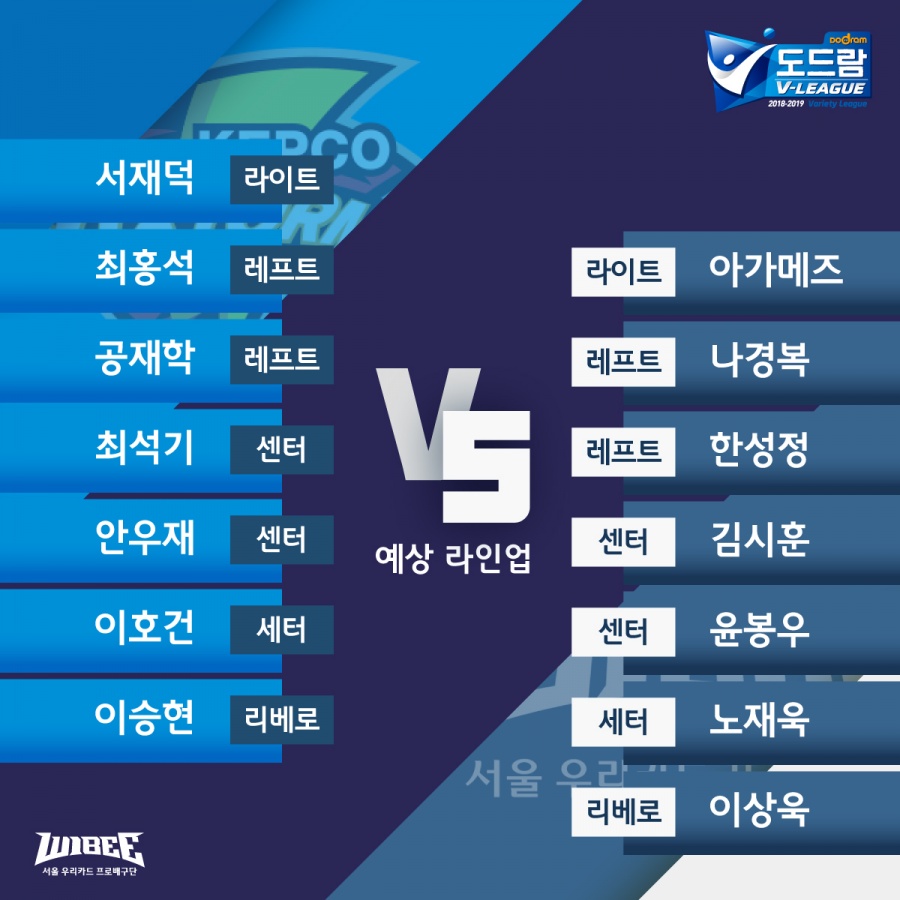 [스포티비뉴스=김민경 기자] 우리카드가 16일 수원체육관에서 도드람 2018~2019시즌 V리그 남자부 한국전력과 6라운드 경기를 치른다.