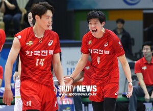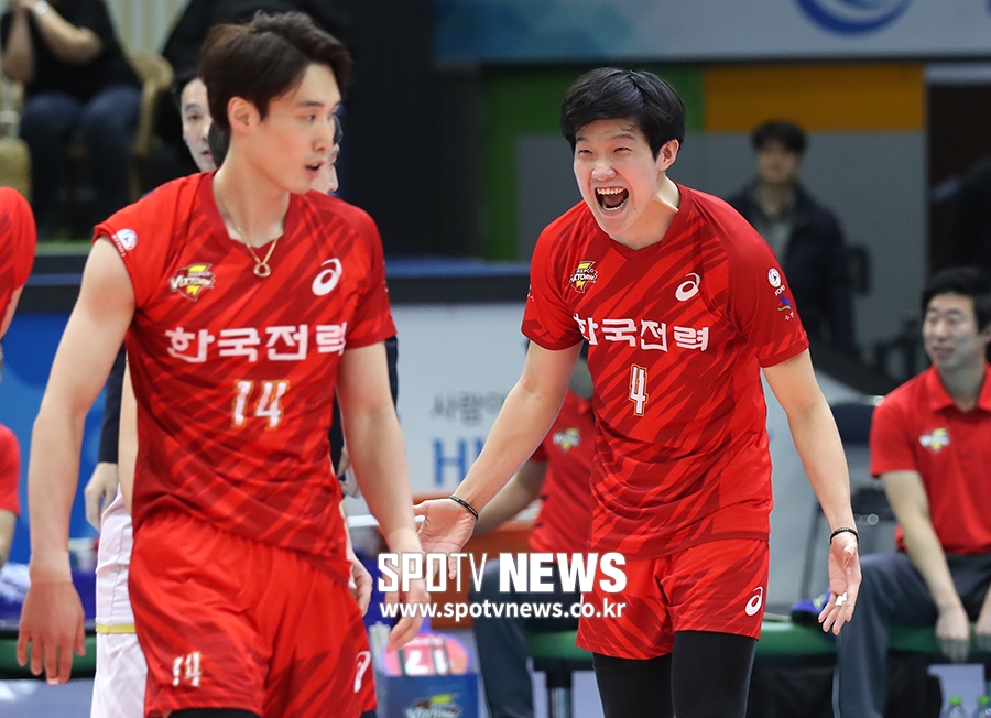 [스포티비뉴스=수원, 한희재 기자] 한국전력과 우리카드의 2018-2019 V리그 남자부 경기가 16일 오후 경기도 수원실내체육관에서 열렸다. 한국전력 안우재가 팀 득점에 기뻐하고 있다.