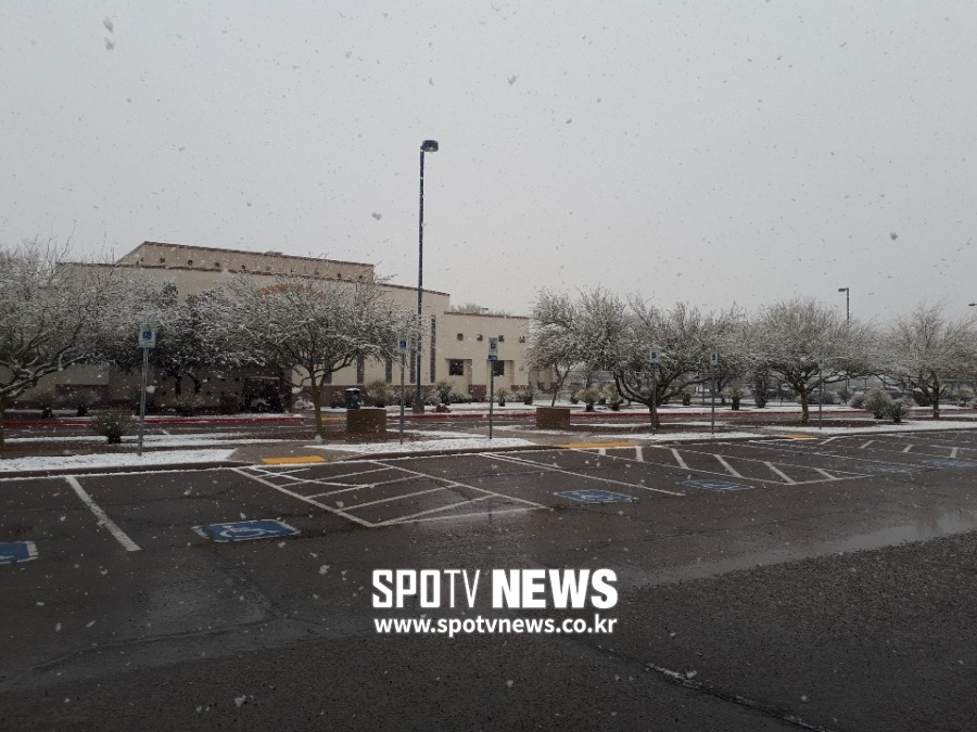 미 애리조나주 투손 지역은 22일(현지시간, 한국시간 23일) 새벽부터 눈이 내리기 시작했다. 날이 밝으면 조금 나아질 것이라는 예보도 있었으나 오전 내내 눈이 내려 야외 훈련이 어려운 상황에 이르렀다. 이날 오전 기온이 섭씨 5도를 밑돌아 선수들의 부상 위험도 있었다.