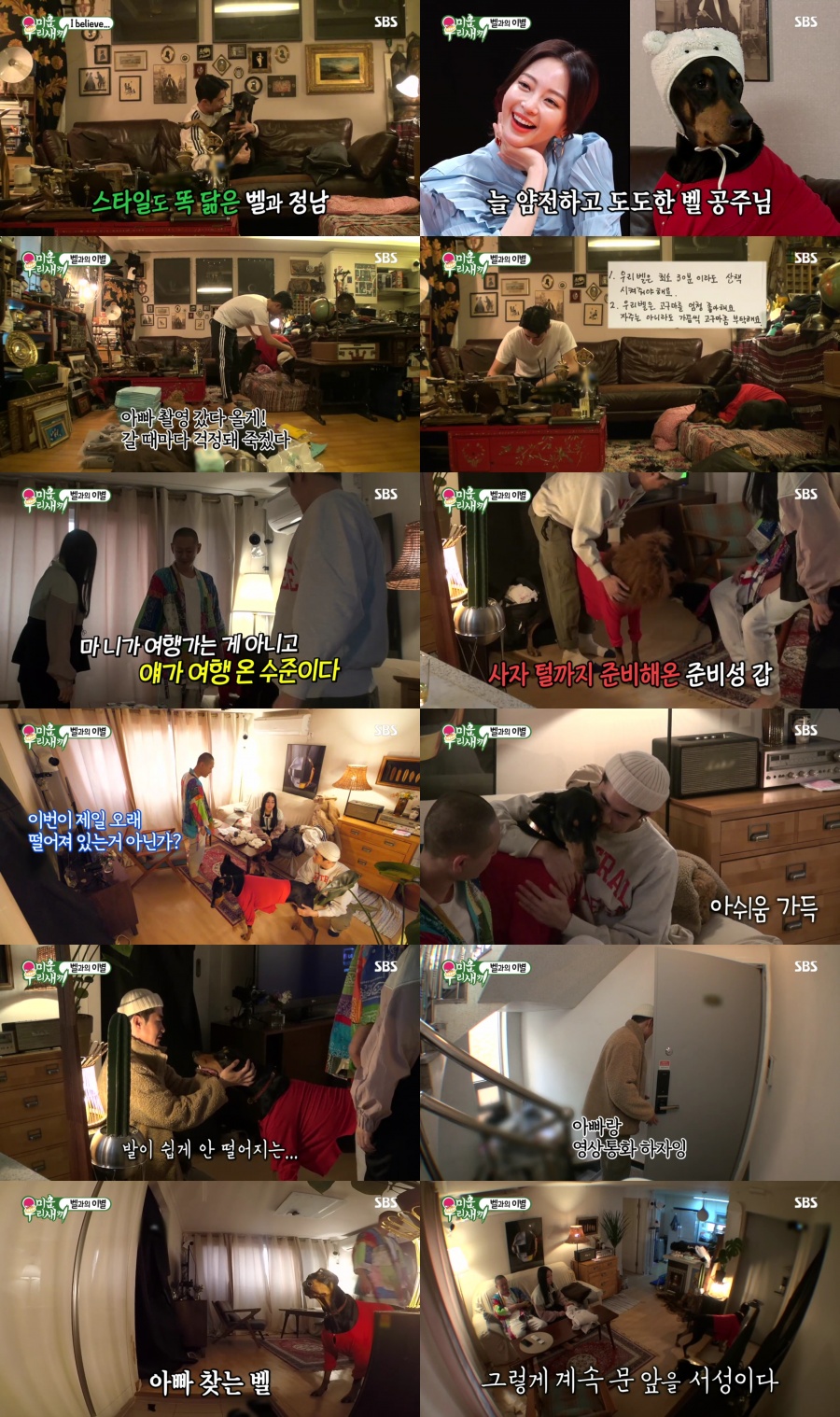 이어 벨을 맡길 친구의 집을 방문한 배정남은 그 집에 있는 강아지에게 기죽지 말라며 사자털 아이템까지 준비해 웃음을 안겼다. 친구는 “마 네가 여행가는 게 아니고 얘가 여행 온 수준이다”며 벨의 짐가방에 놀라워했다. 하지만 이내 벨을 두고 떠날 시간이 다가오자 배정남은 아쉬움에 발길을 떼지 못했다. 벨 역시 평소보다 오래 떨어져있는 걸 감지했는지 낑낑거려 코끝을 찡하게 했다. 배정남이 “아빠랑 영상 통화하자”며 문을 닫자 벨은 문 앞에서 서성이며 자리를 떠나지 않아, 이날 벨과 애틋한 이별 장면은 24.2% 최고의 1분을 장식했다.