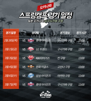 - 3월 6일(수) : 삼성 라이온즈(아카마 구장)