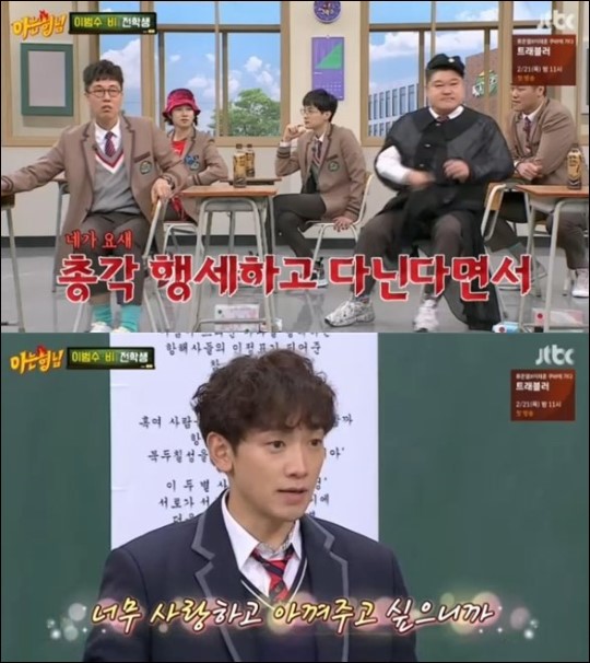 이에 비는 "얘기를 하지 않겠다고 한 적은 없다"며 "다만 요즘 워낙에 조심스럽게 이야기를 하고 포장을 해도 그것이 화살로 돌아오더라. 일과 집안일을 확실히 나누고 싶어서 조심스럽다"고 밝혔다. 이어 "너무 많이 사랑하고 너무 많이 아껴주고 싶은 마음에 그러는 것"이라고 말해 멤버들의 질투를 샀다.