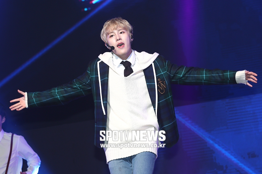[스포티비뉴스=서울, 곽혜미 기자] 하성운 첫 번째 미니 앨범 'My Moment' 발매 기념 쇼케이스가 27일 오후 서울 광진구 광장동 광장동 예스24라이브홀에서 열렸다. 하성운이 무대를 펼치고 있다.