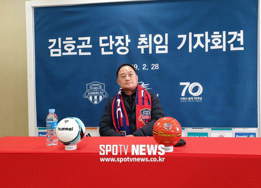 수원FC는 28일 오전 11시 수원종합운동장에서 김호곤 신임 단장 취임 기자회견을 열었다. 여기서 김호곤 신임 단장은 취임 소감, 수원을 선택한 이유, 목표에 대해 밝혔다.