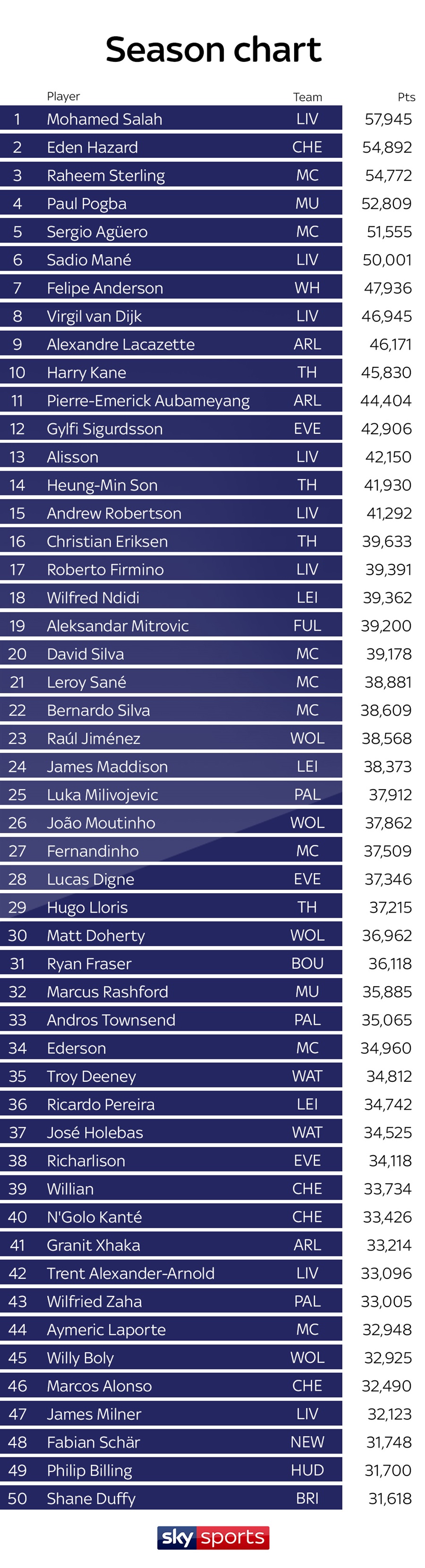 손흥민은 번리, 첼시전에서 침묵해 2경기 연속 공격포인트를 기록하지 못했지만 쌓아 놓은 점수가 워낙 높아 순위권을 유지했다.