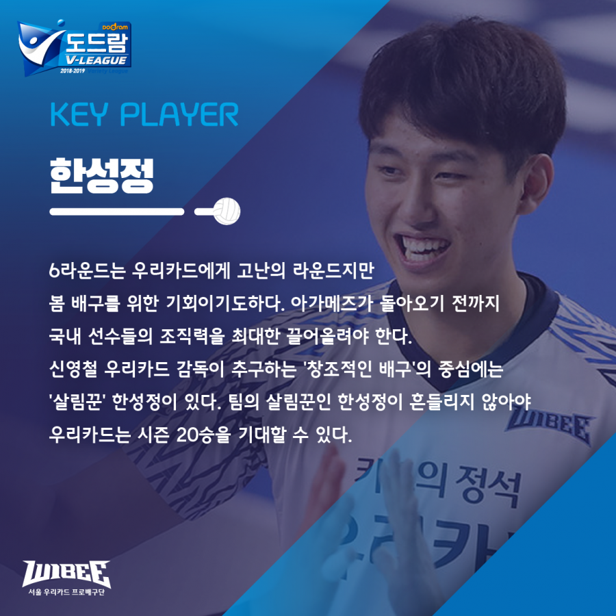현재 3연패에 빠진 우리카드는 19승 14패 승점 60점으로 3위를 유지하고 있다. 아가메즈가 빠진 뒤 승수를 쌓지 못하고 있는 우리카드는 연패 탈출에 나선다.