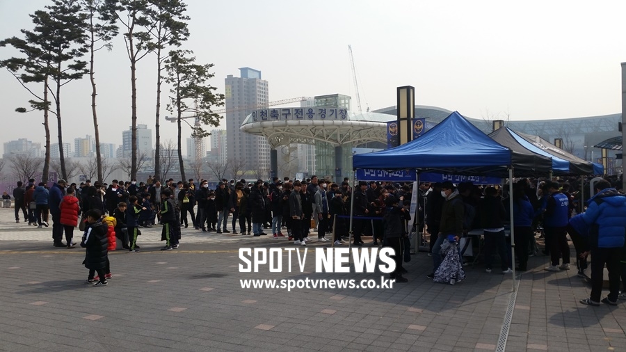 인천축구경기장이 있는 도원역에 내렸을 때 생각이 기우라는 것을 알았다. 경기장 앞은 많은 팬들이 줄을 서 있었다. 지난 시즌 인천이 잔류를 결정지은 마지막 경기만 해도 이렇게 많지 않았다. 러시아 월드컵과 자카르타-팔렘방 아시안게임이 끝나 축구 열기가 고조된 순간에도 이렇게 많지 않았다. '오!'라는 말이 절로 나왔다.